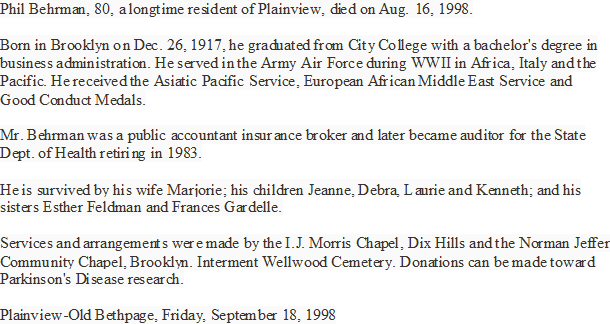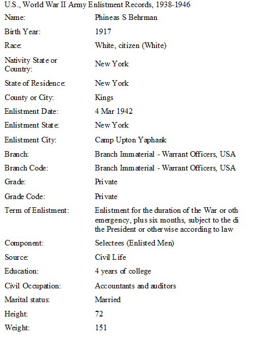 Notes for PHINEAS "PHIL" S BEHRMAN: