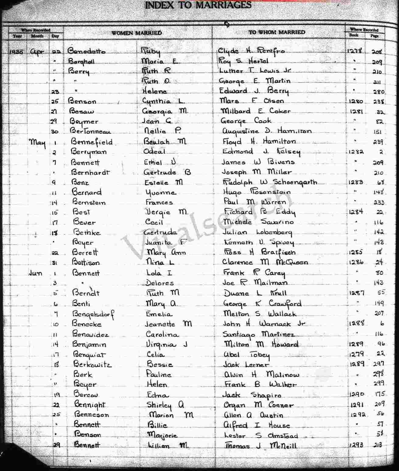 Married: Jack Lerner June 15, 1935 in Los Angeles, Los Angeles County, California.