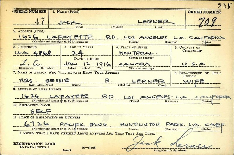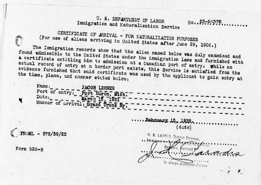Name Changes: May 29, 1939 - Jacob Lerner to Jack Lerner.