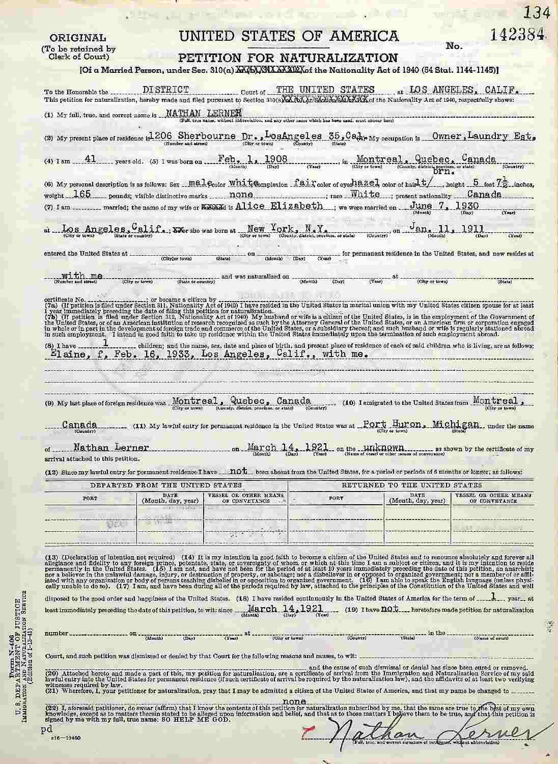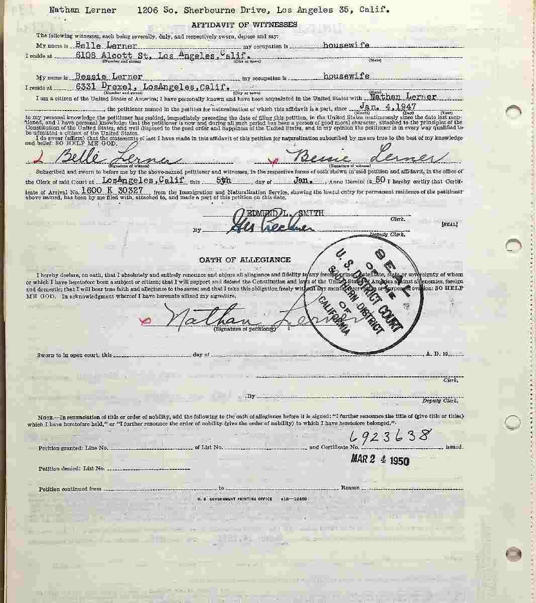 Petition For Naturalization: March 24, 1950.