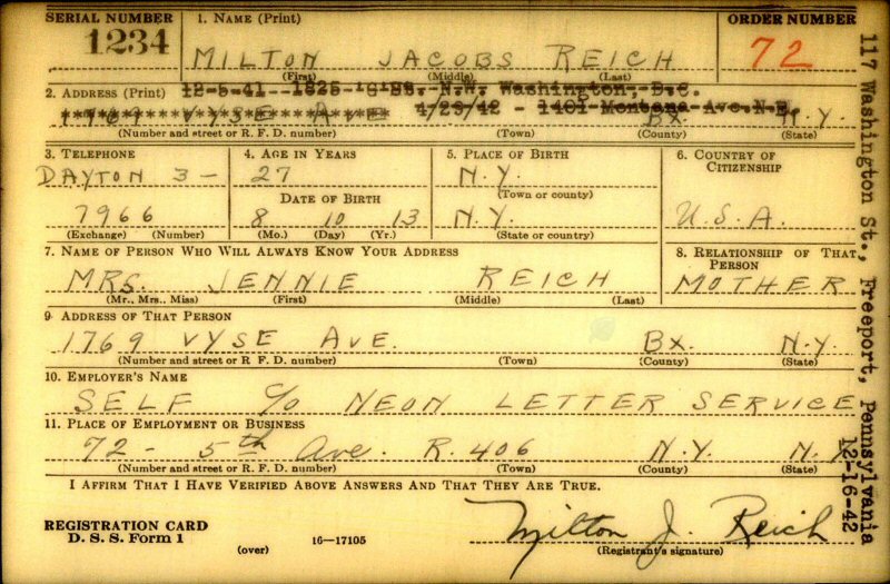 Notes for MILTON J REICH: