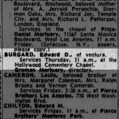 Died: May 8, 1962 in Oxnard, Ventura County, California.