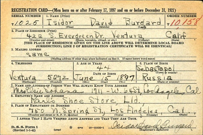 February 14, 1942 - 422 S Evergreen Dr, Ventura County, California.