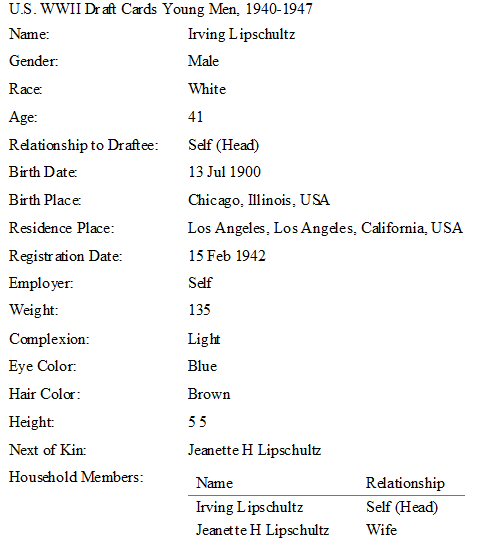 Notes for IRVING S (nee LIPSCHULTZ) BURTON: