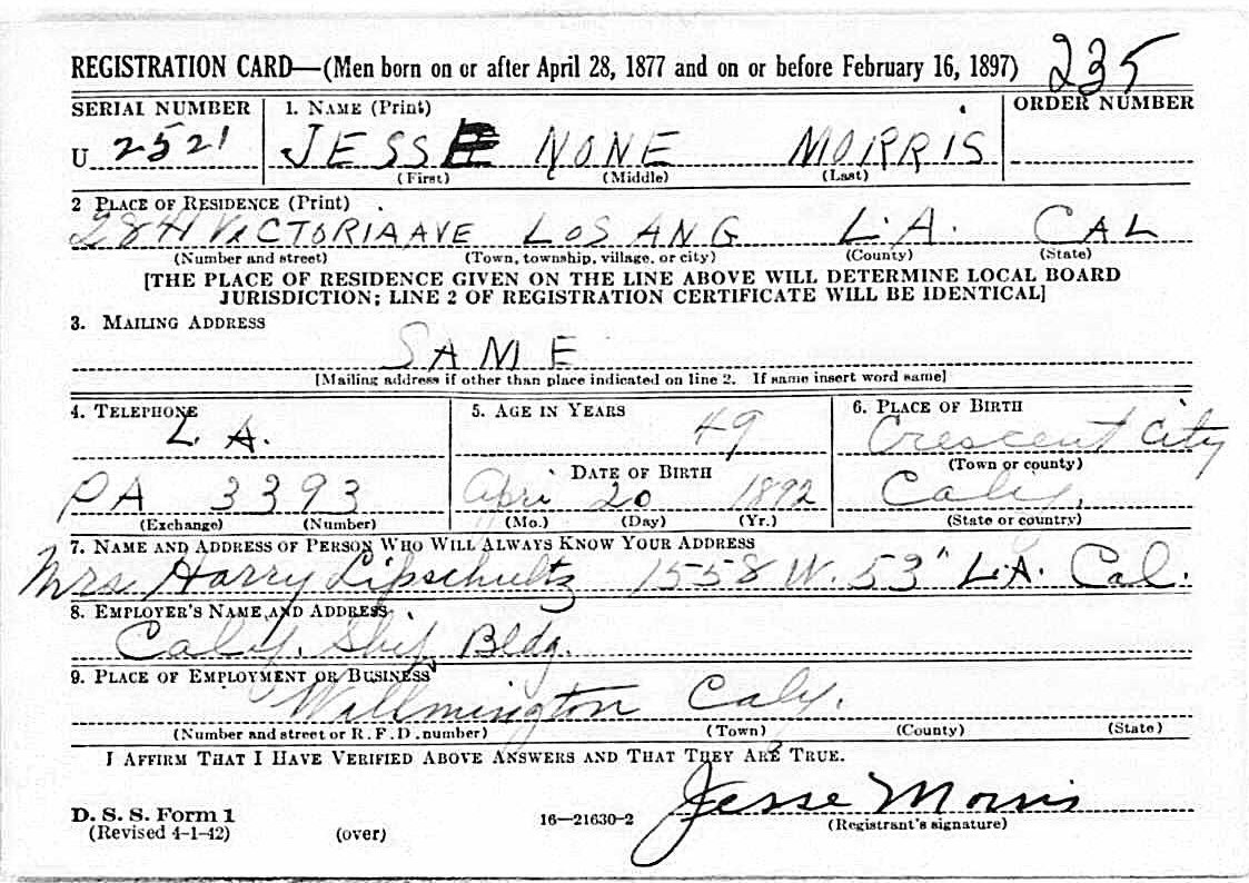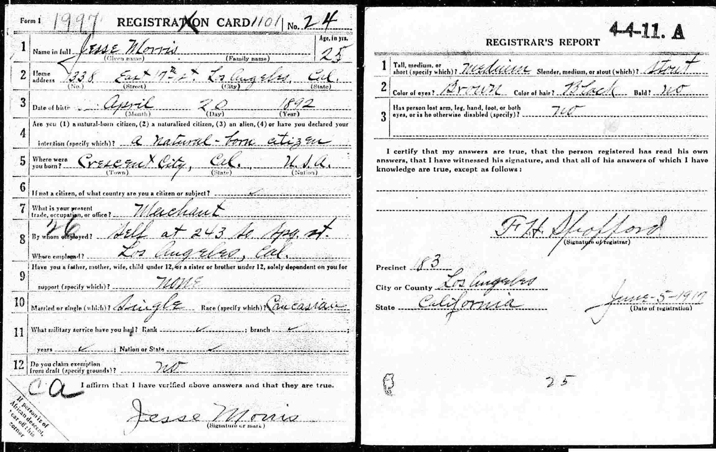 June 5, 1917 - 1338 East 17th Street, Los Angeles, Los Angeles County, California.