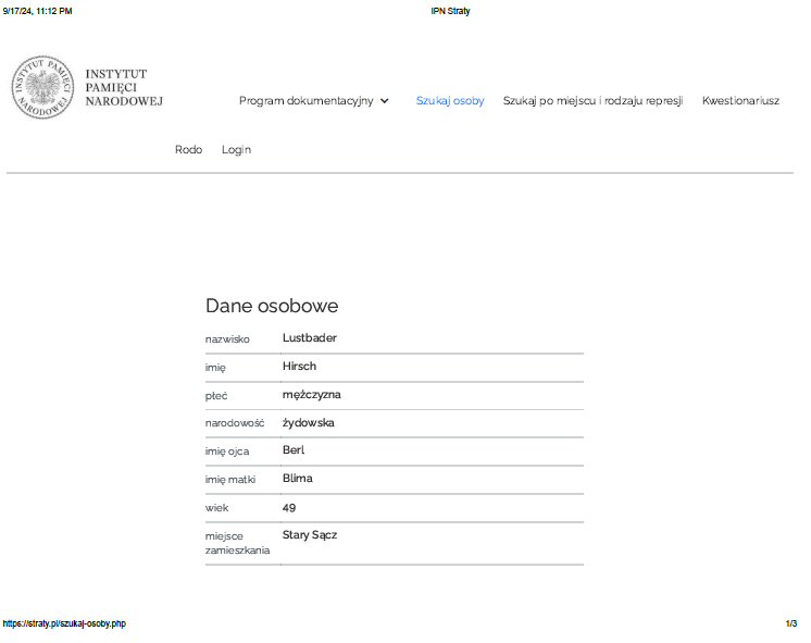 Polish Record of Death - WWII
