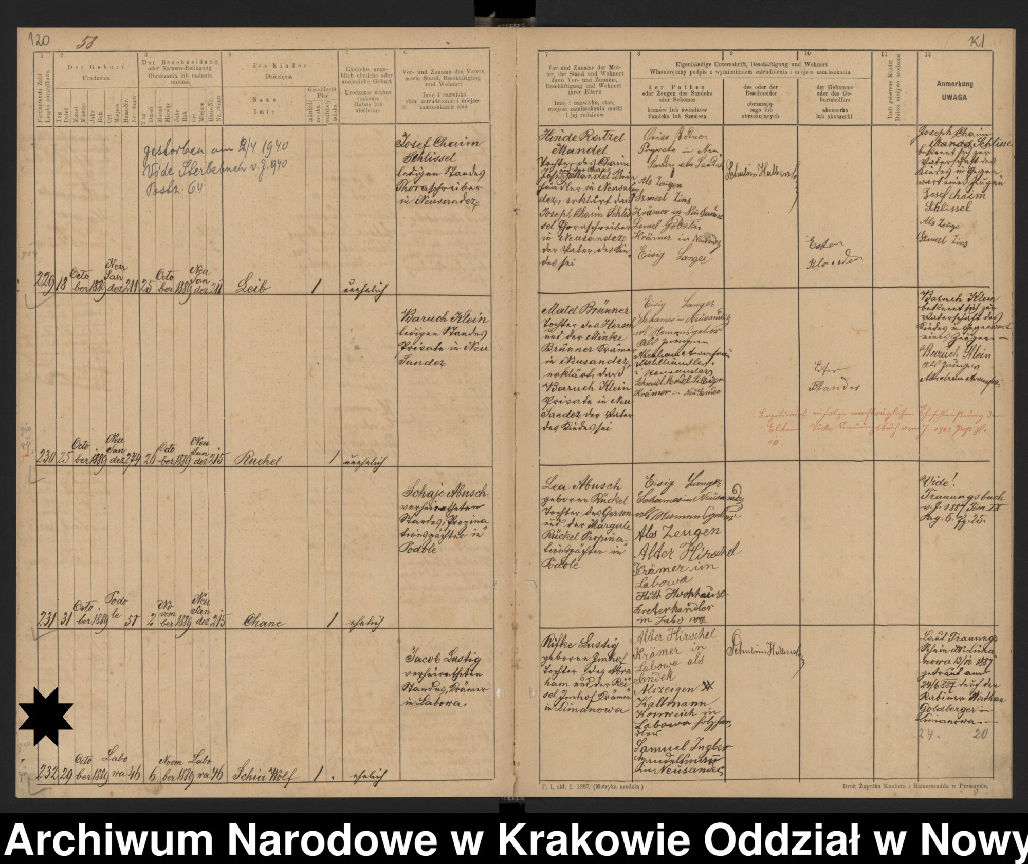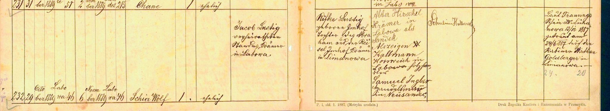 Notes for SCHIA WOLF LUSTIG: Born: October 29, 1889 in Labowa, Poland. Bris: November 6, 1889 in Labowa, Poland. Died: Unknown in Unknown.