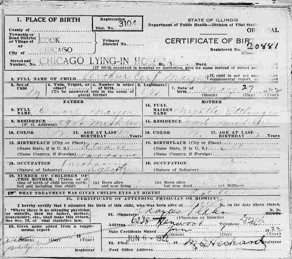 Born: May 22, 1922 in Chicago, Cook County, Illinois.