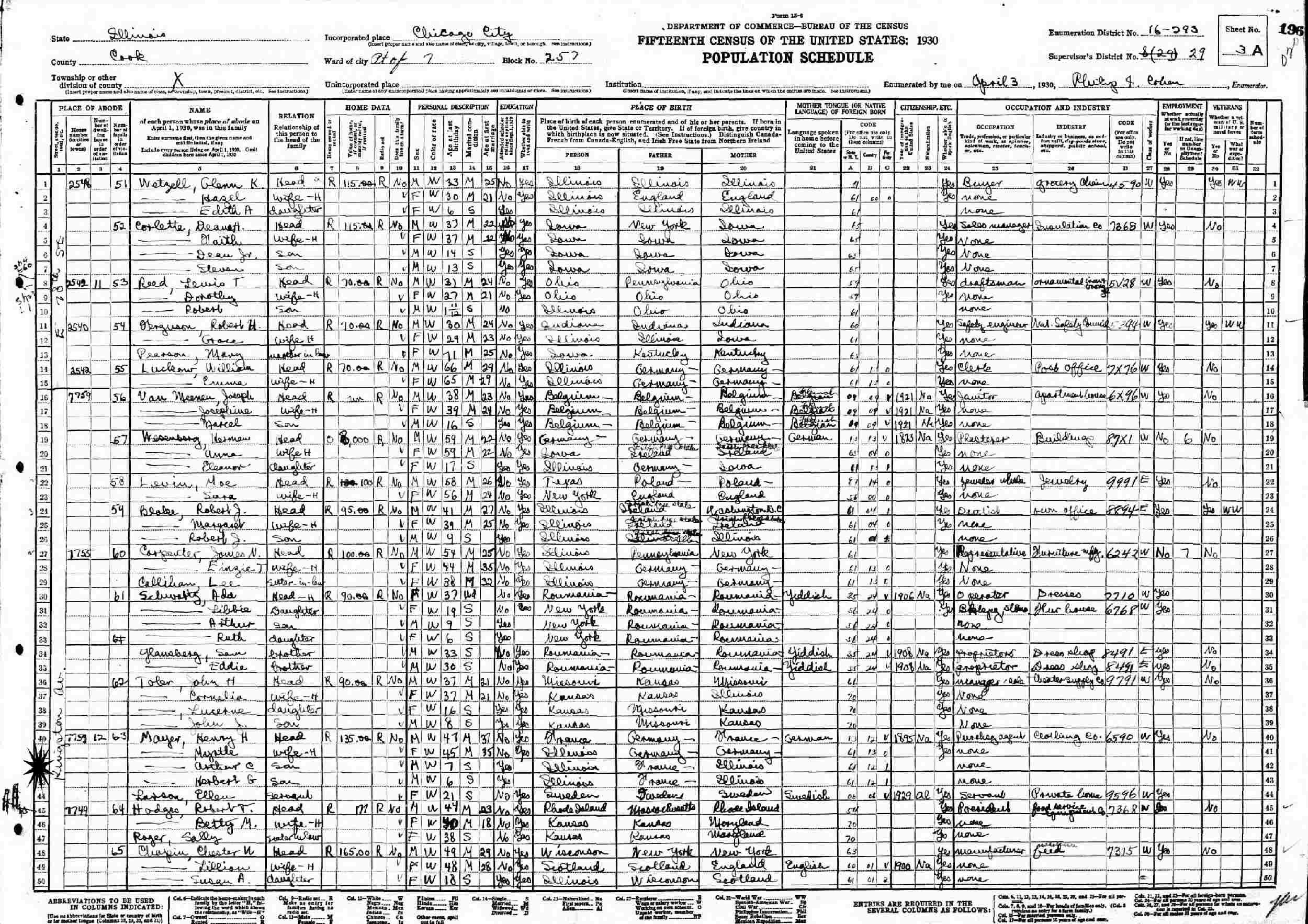 April 3, 1930 - 7751 or 7759 Kingston Avenue, Part of Ward 7, Block 257, Supervisor's District 29, Enumeration District, 16-293, Chicago, Cook County, Illinois.