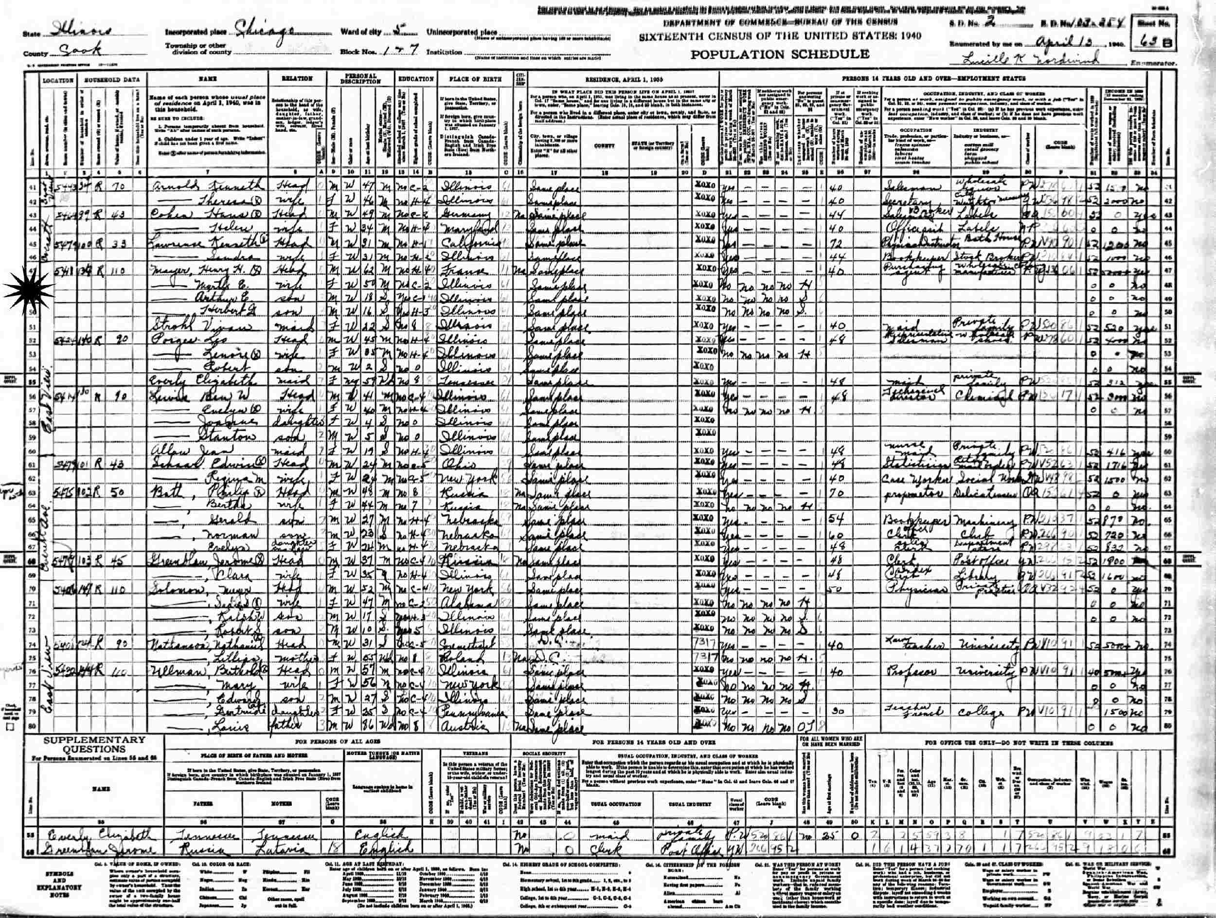 April 19, 1940 - 5418 East Vilis (?), Ward 5, Blocks 1 & 7, Supevisor's District 2, Enumeration District 03-254, Chicago, Cook County, Illinois.