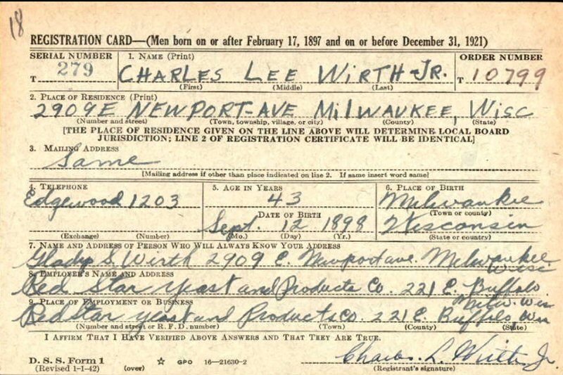 February 14, 1942 - WWII Draft Registration.