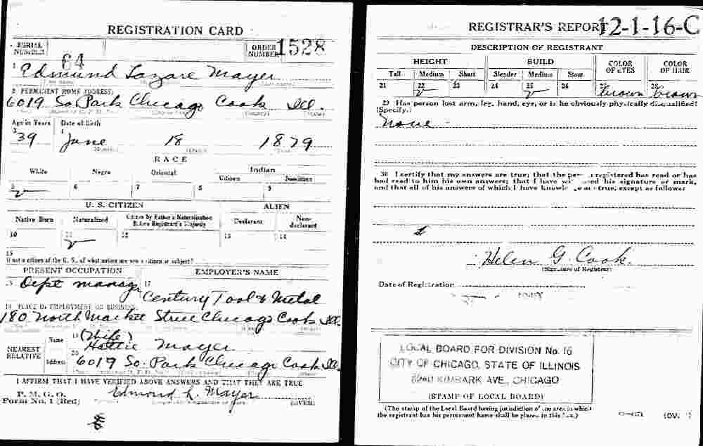February 10, 1917 - 6019 S Park, Chicago, Cook County, Illinois.