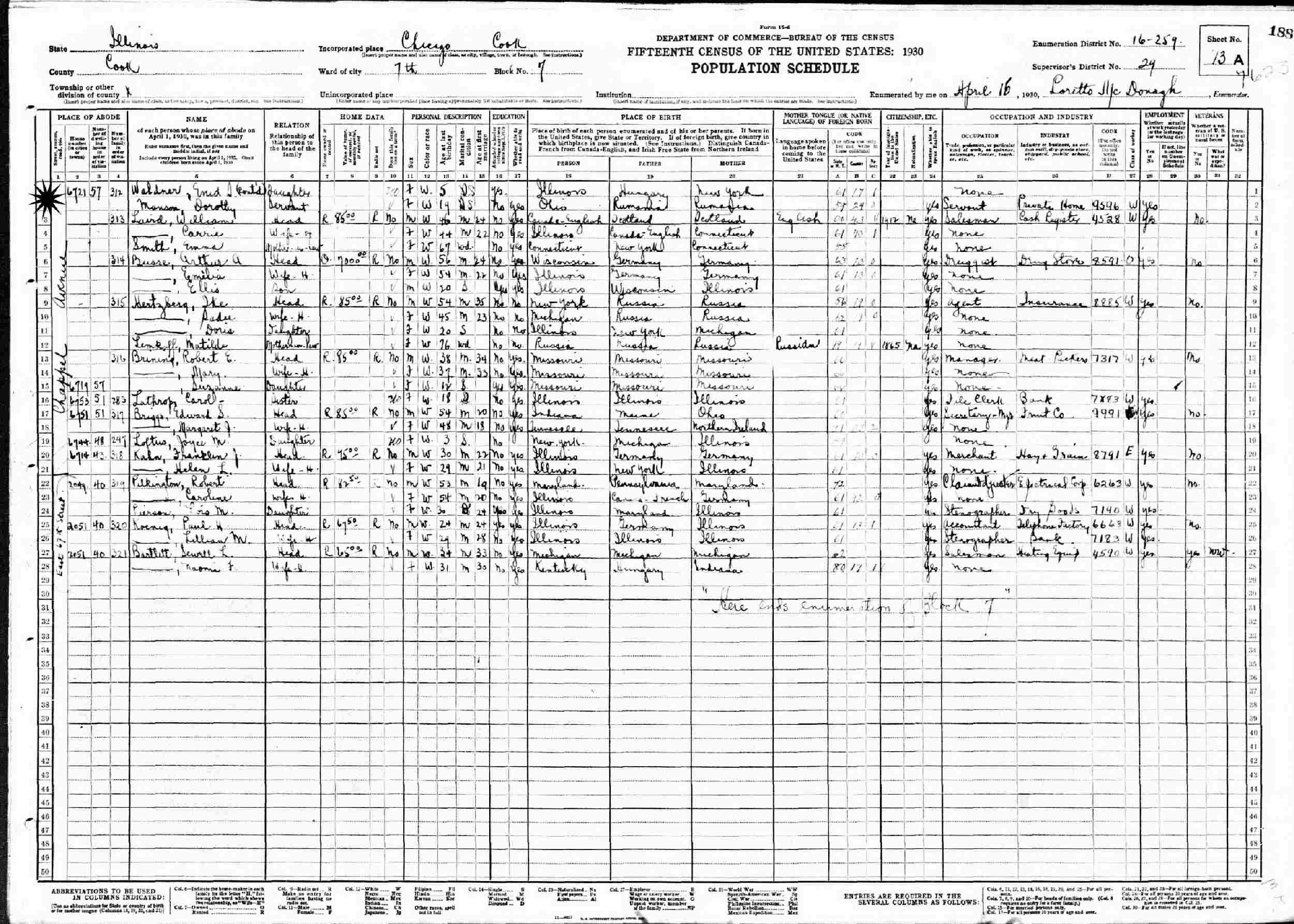 April 15, 1930 - 6721 Chappel Avenue, Ward 7, Block 7, Supervisor's District 29, Enumeration District 16-259, Chicago, Cook County, Illinois.
