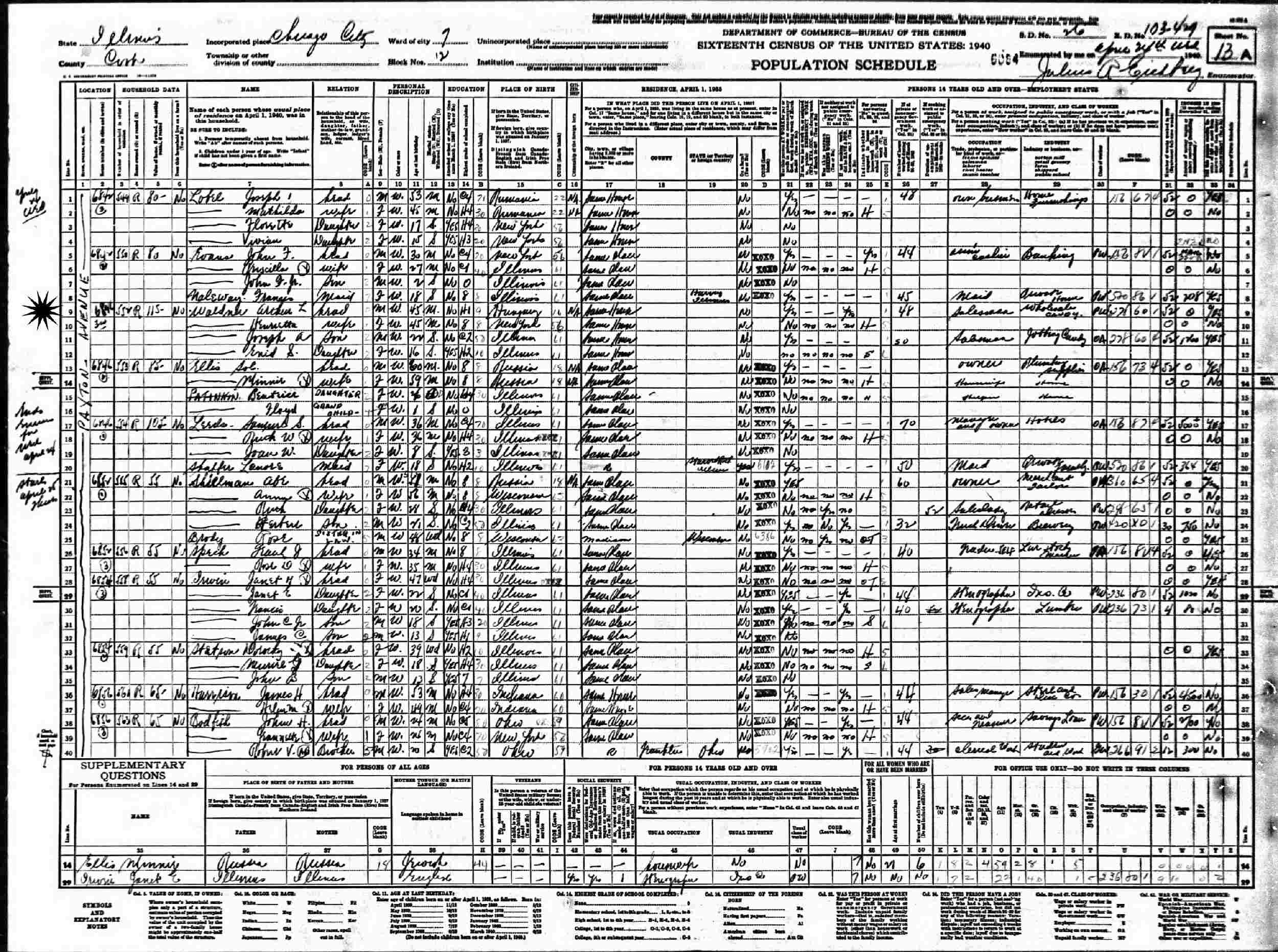 April 24, 1940 - 6846 Paxton Avenue, Ward 7, Block 12, Supervisor's District 26, Enumeration District 103-429, Chicago, Cook County, Illinois.