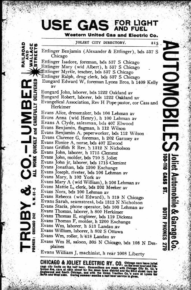 1899-1905 - 537 S Chicago, Joliet, Will County, Illinois.