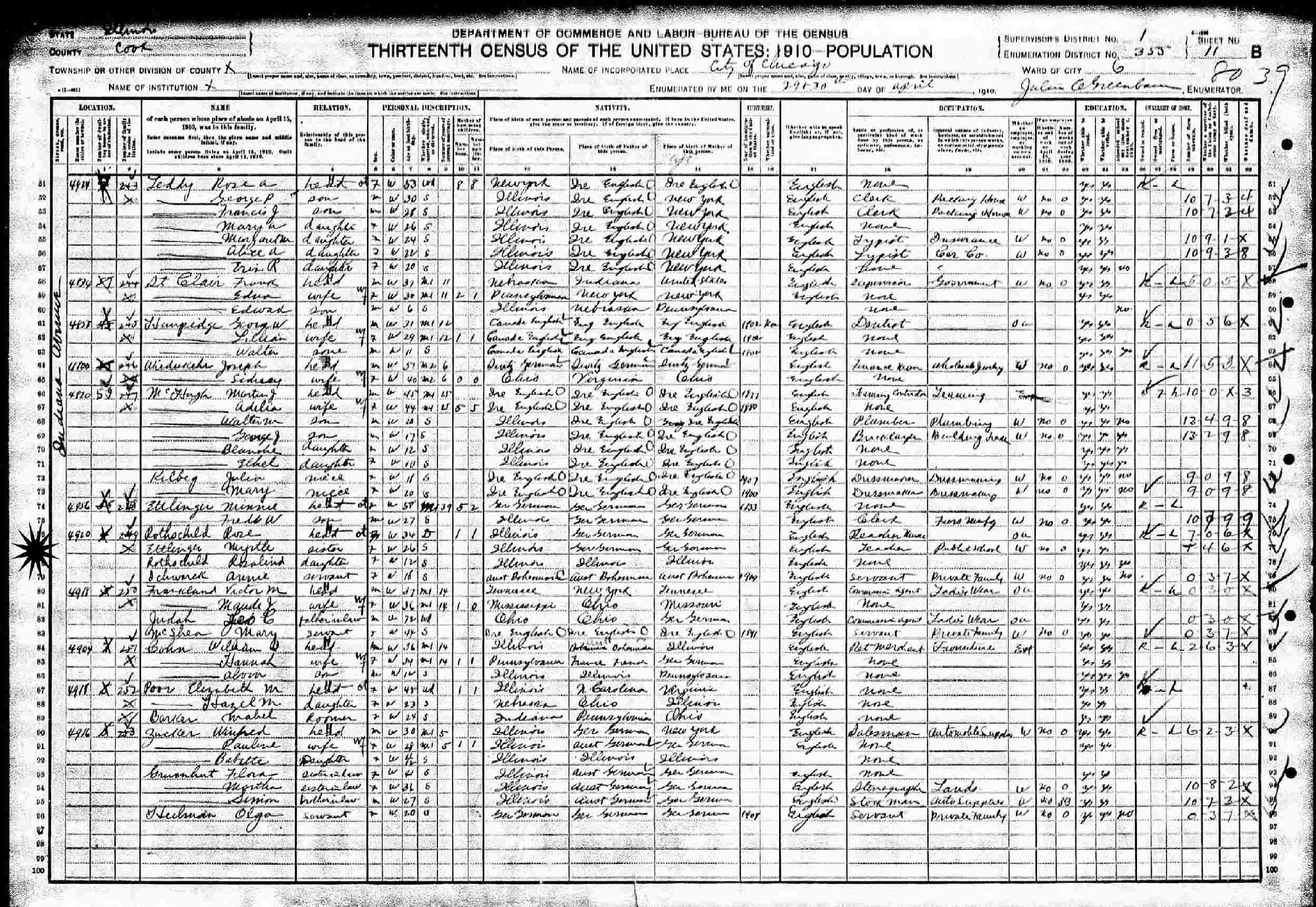 April 29-30, 1910 - 4920 Indiana Aveneue, Ward 6, Supervisor's District 1, Enumeration District 355, Chicago, Cook County, Illinois.