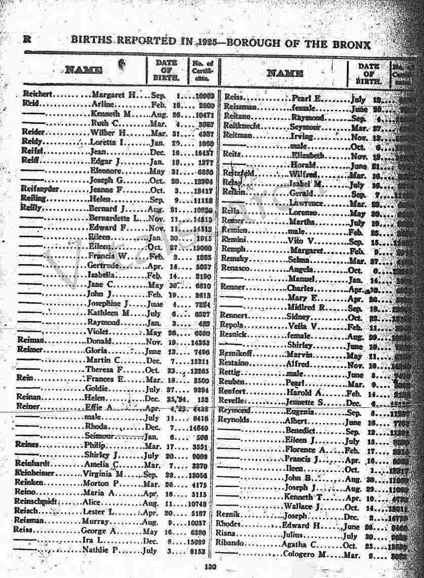 Born: October 6, 1925 in Bronx New York. (Birth Certificate: #12257.)