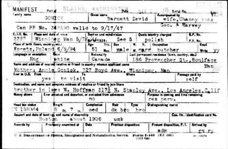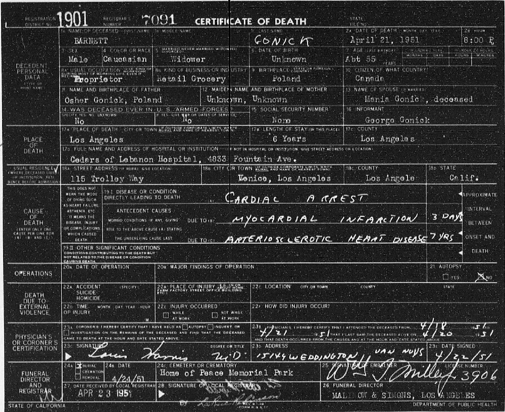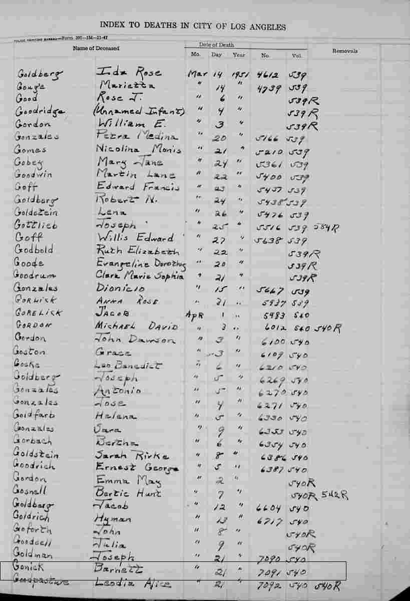 Notes for BARNETT "BARNEY" DAVID GONICK:
