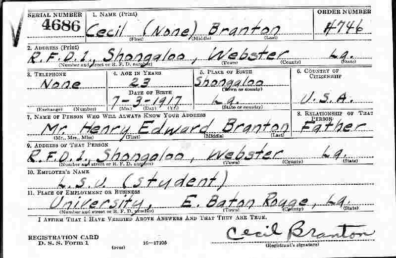 Notes for CECIL BRANTON: