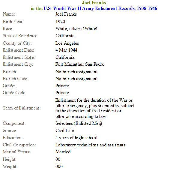 Notes for JOEL MORRIS FRANKS: