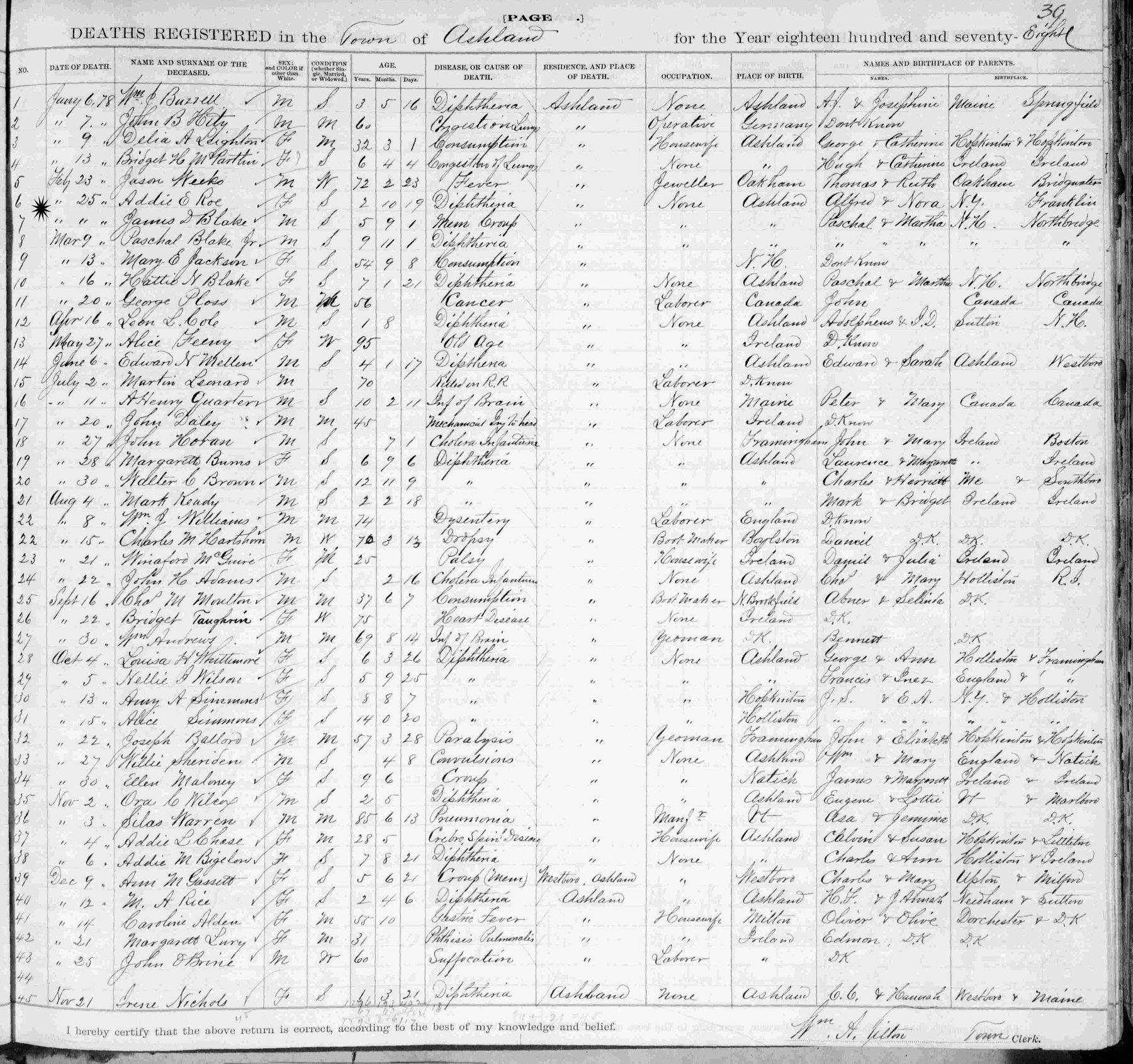 Notes for ADELIADE ESTELLE "ADDIE" ROE: Daughter of Alfred Seelye and Nora Ardelia (Metcalf) Roe. Born: April 6, 1875 in Ashland, Middlesex County, Massachusetts. Died: February 24, 1878 in Ashland, Middlesex County, Massachusetts.