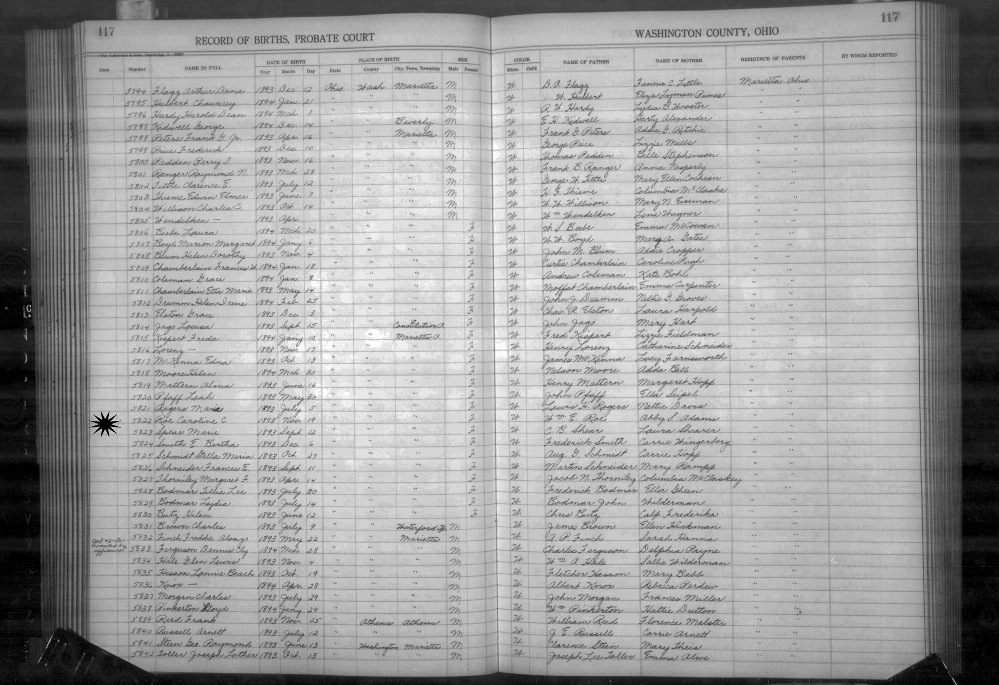 Born: November 19, 1893 in Marietta, Washington County, Ohio.