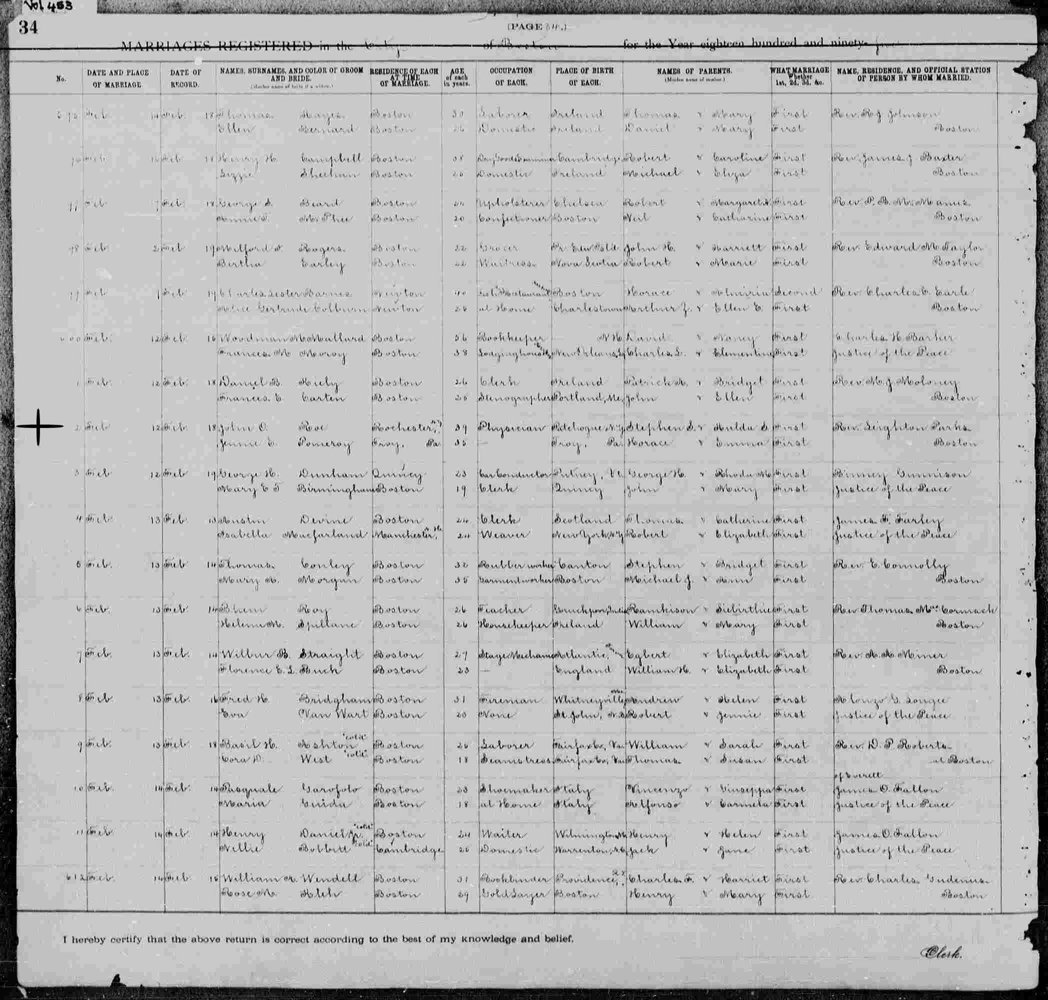 Married: Jennie Pomeroy February 12, 1895 in Unknown.