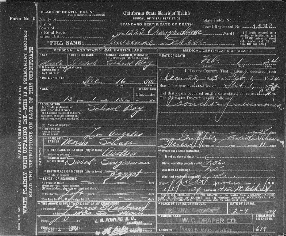 Buried: February 1, 1924 in Plot: 33-27; Mt. Zion Cemetery, S. Downey Road, Los Angeles, Los Angeles County, California.