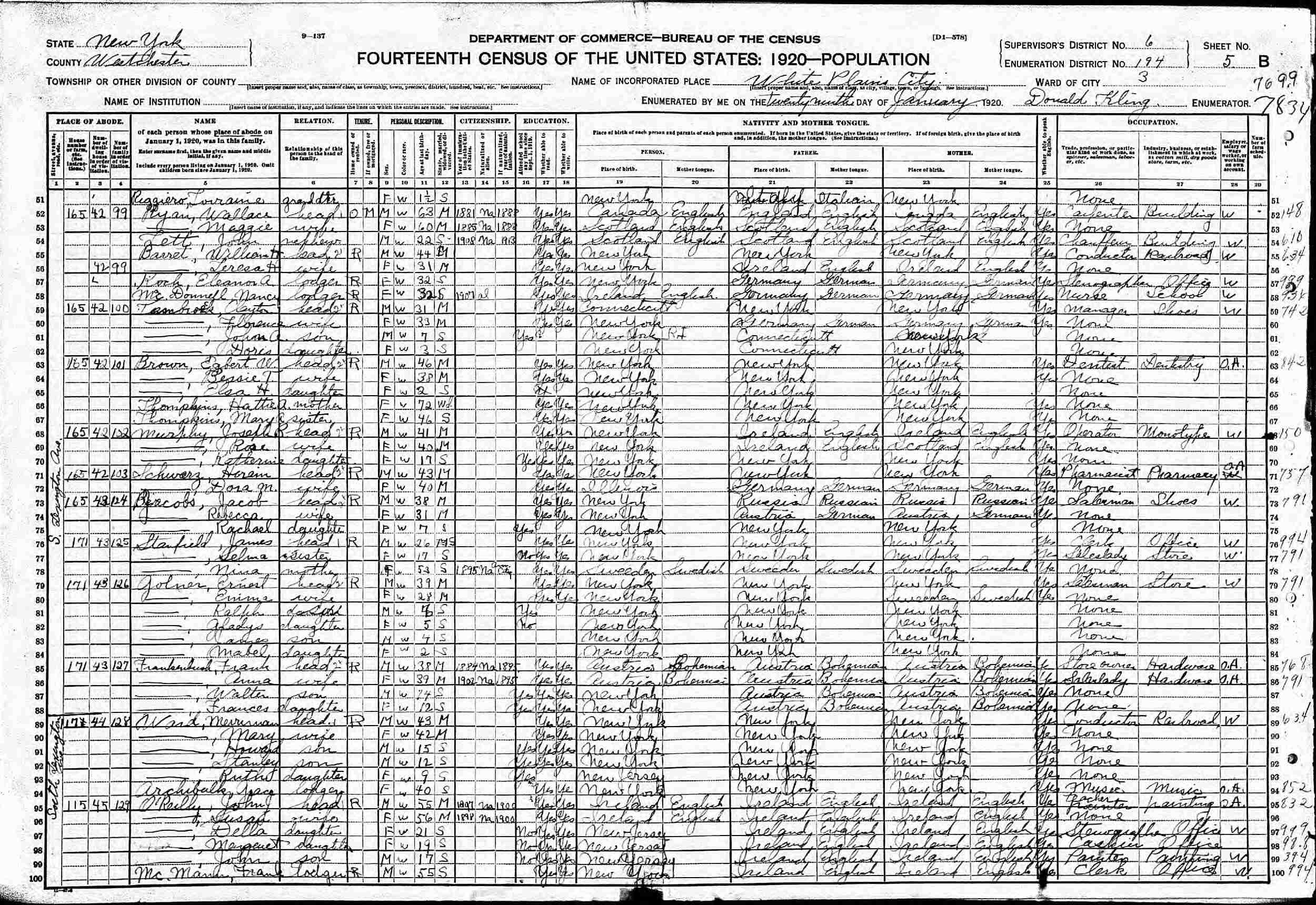 January 29, 1920 - 165 S. Lexington Avenue, Ward 3, Supervisor's District 6, Enumeration District 194, White Plains, Westchester County, New York.
