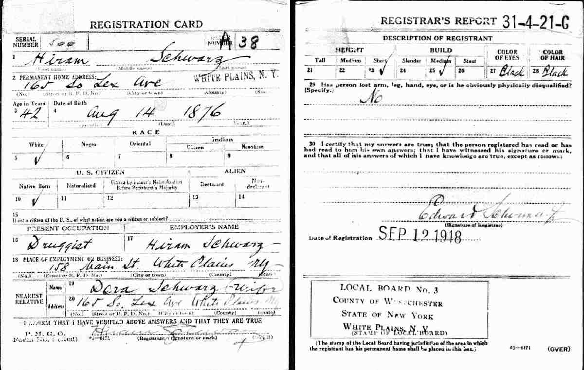 September 12, 1918 - 165 So. Lex Avenue, White Plains, Westchester County, New York.