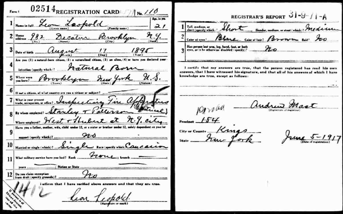 June 5, 1917 - 982 Decatur, Brooklyn, Kings County, New York.