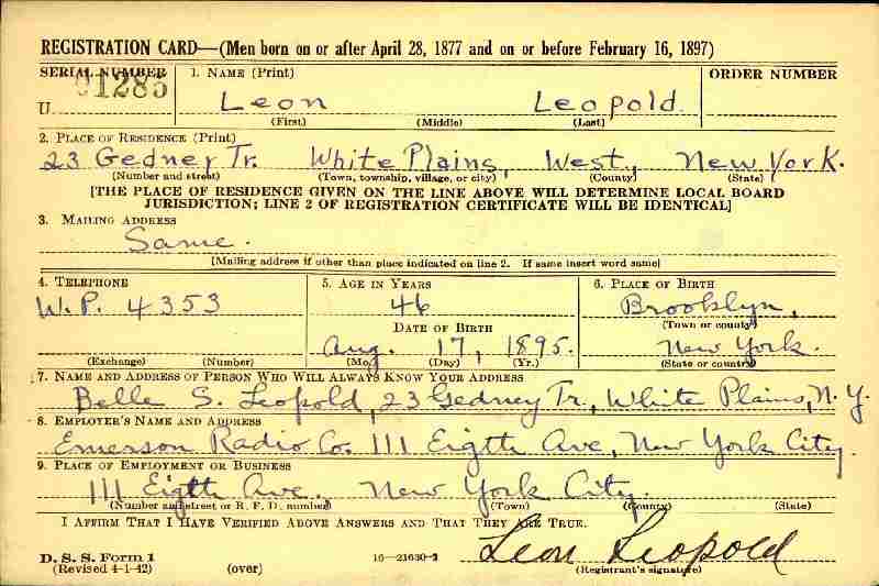 Notes for LEON "LEO" LEOPOLD: