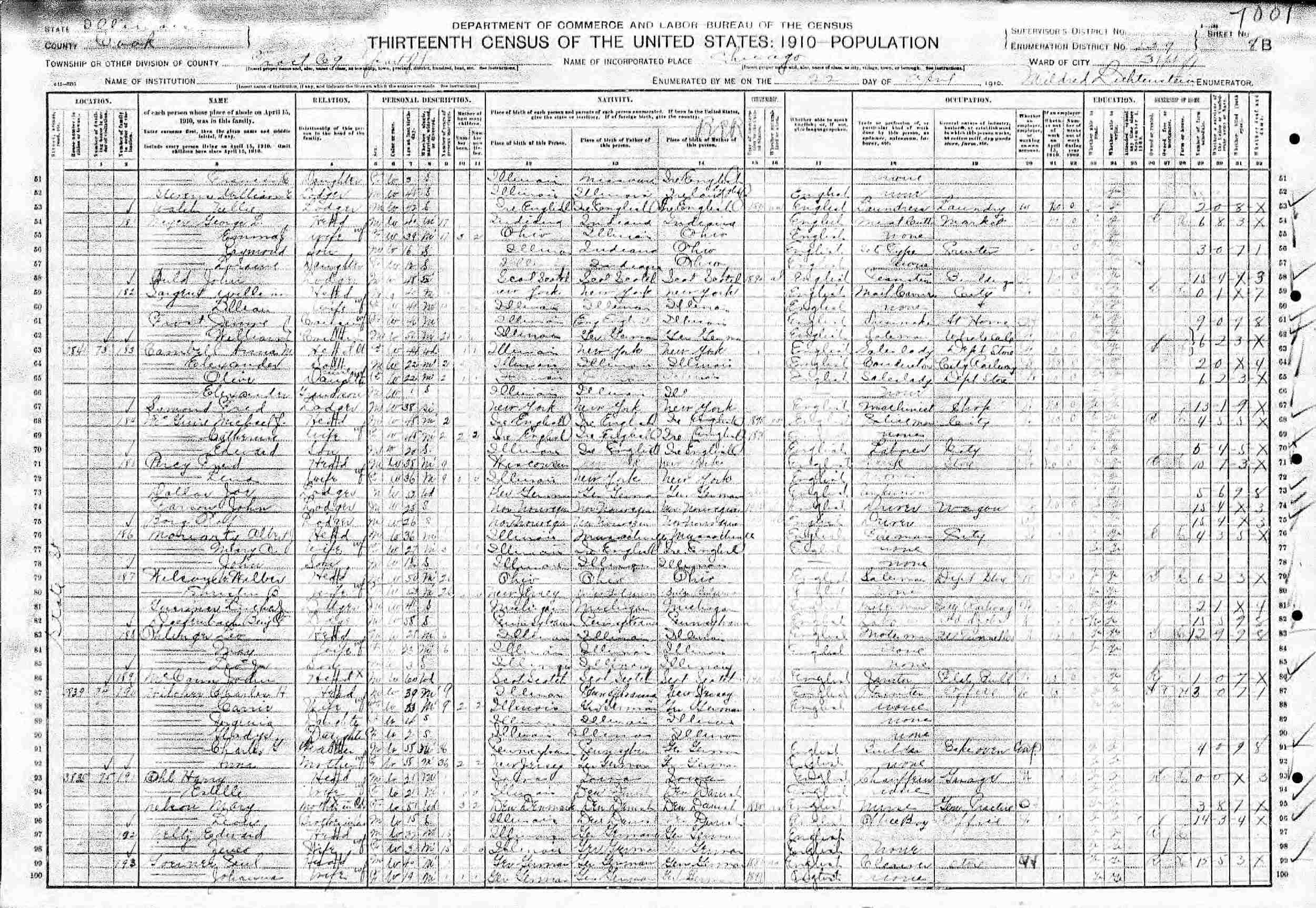 April 22, 1910 - 2841 State Street, Tract G9, Ward 3, Enumeration District ?27, Chicago, Cook County, Illinois.