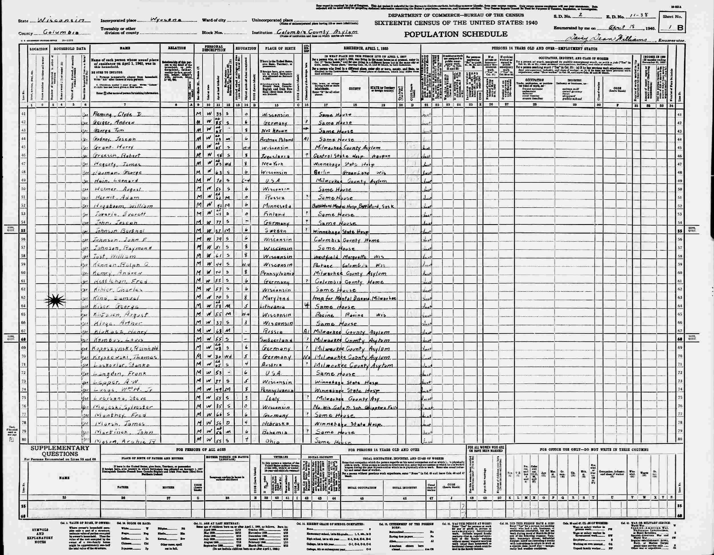 1940 - Columbia County Asylum, Milwaukee, Wyoceno Village, Columbia, Milwaukee County, Wisconsin.