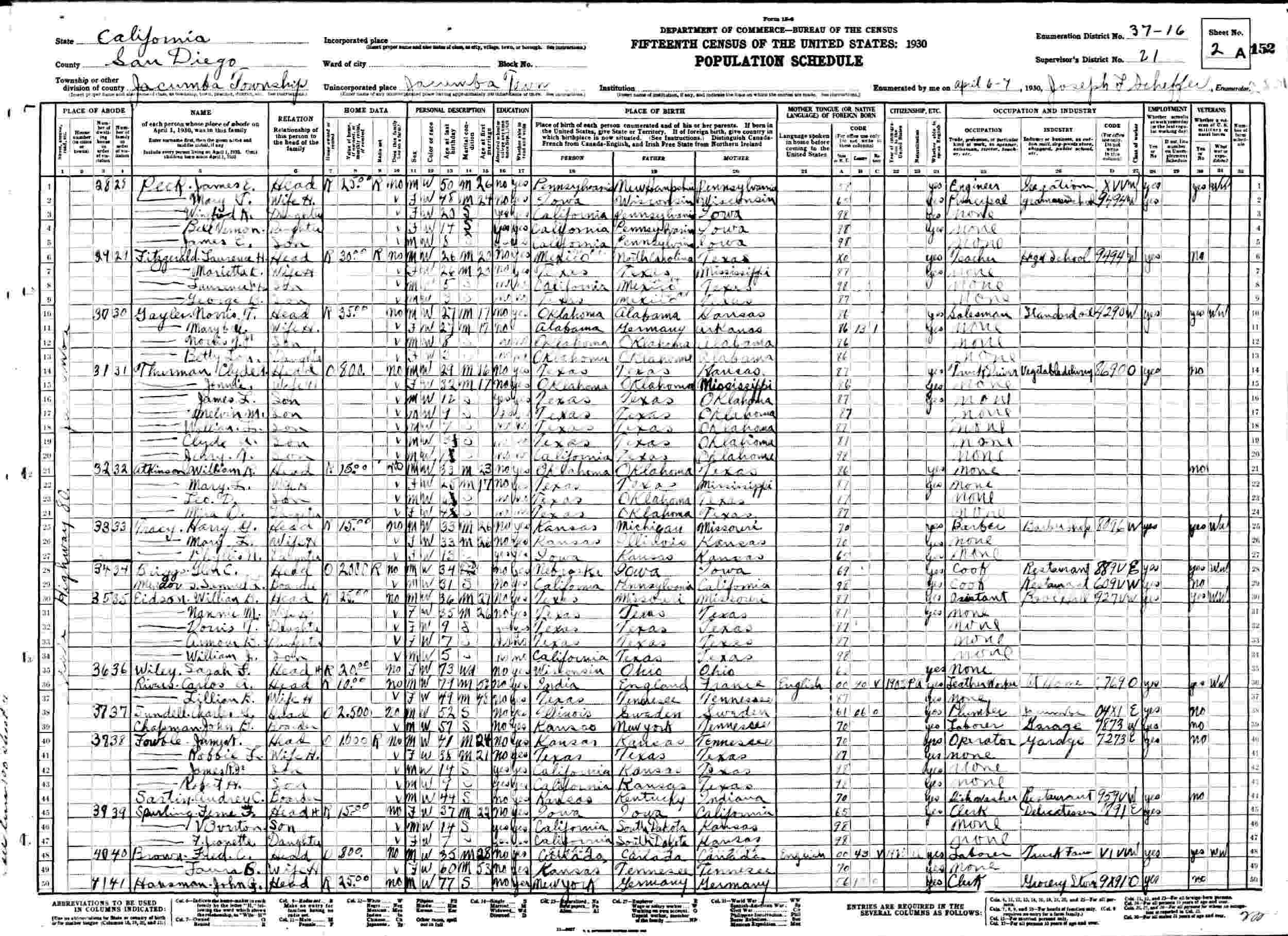 April 6-7, 1930 - Jacumba Street, Supervisor's District 21, Enumeration District 37-16, Jacumba, San Diego County, California.