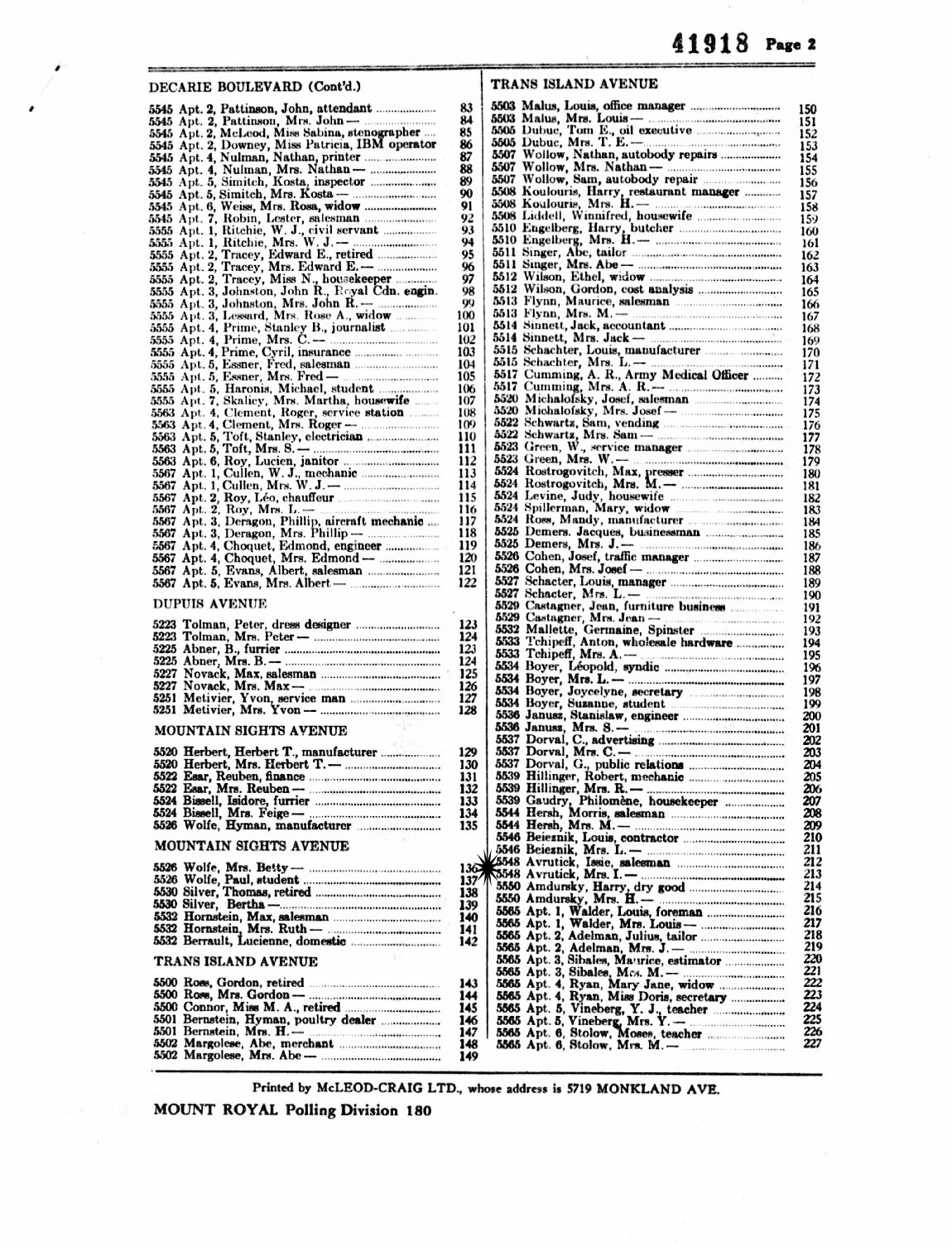 February 4, 1916 - May 12, 1918 - 3885 City Hall, Montreal, Quebec, Canada.