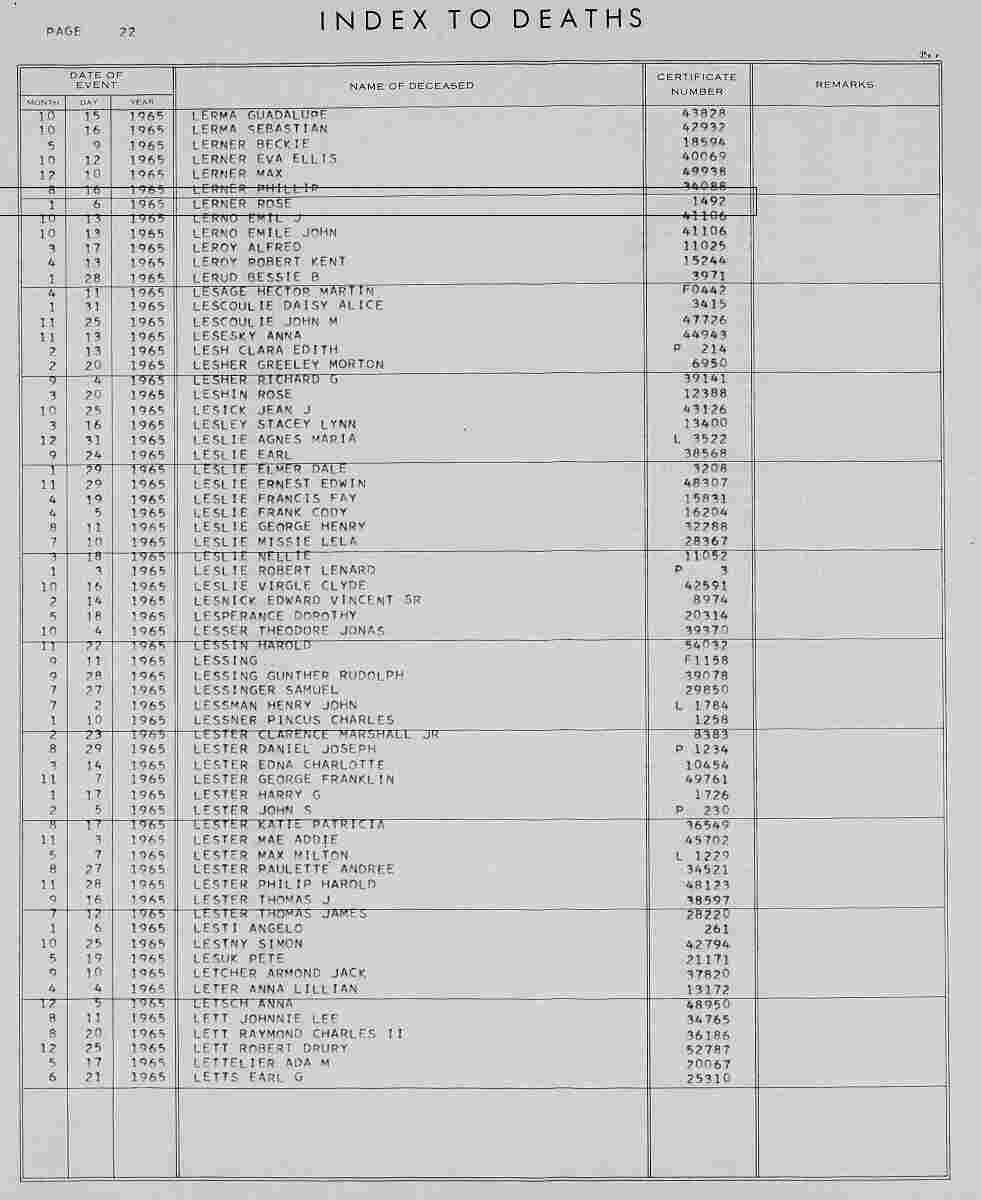 Notes for ROSE "RAZEL/RAIZEL" SIROTA LERNER: