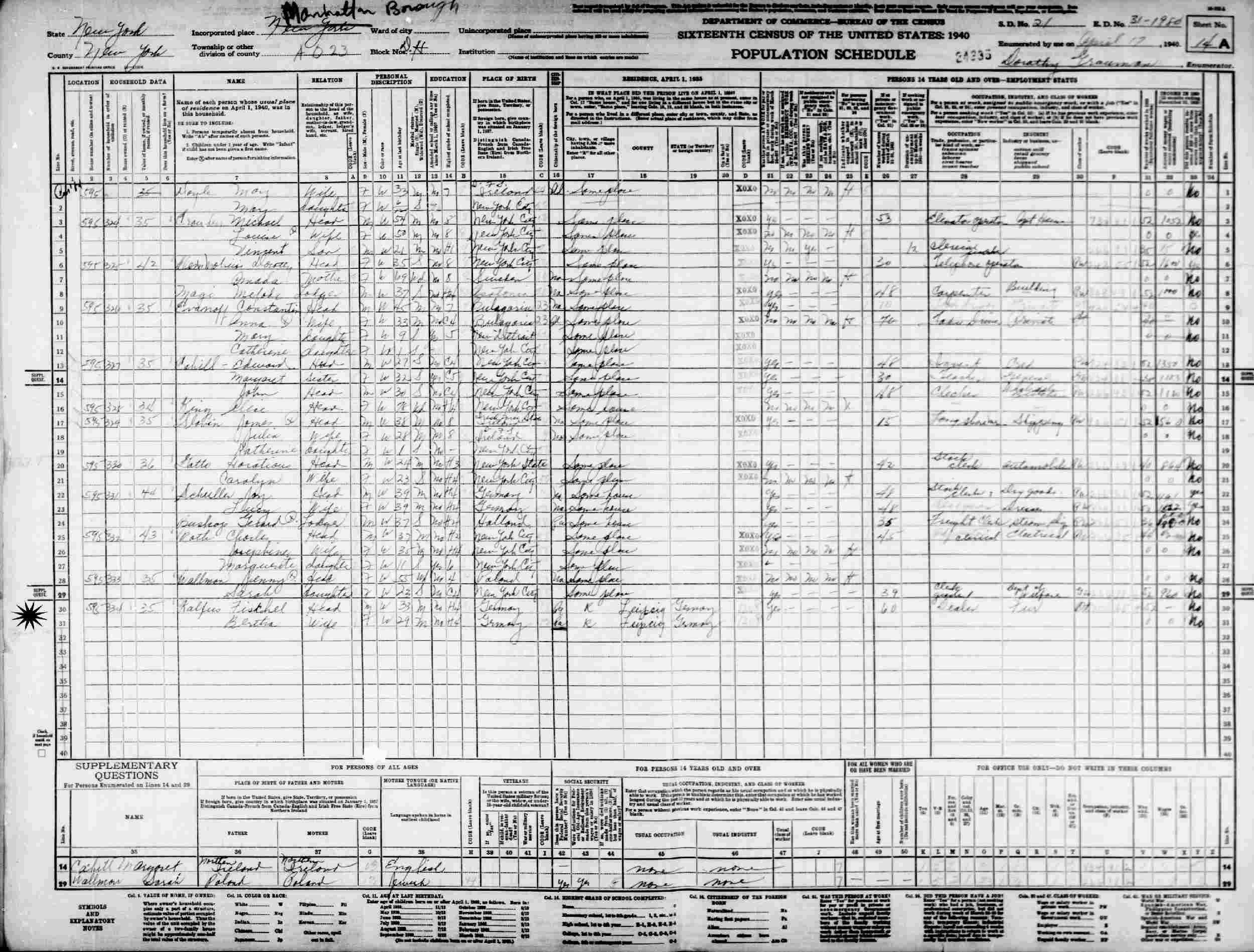 April 17, 1940 - 595 N. 7th St, Assembly District 23, Manhattan, New York, New York.