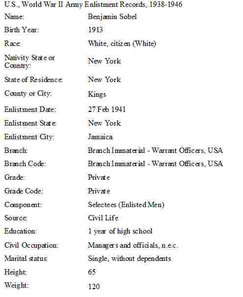February 27, 1941 - Enlistment Date - Jamaica, New York.