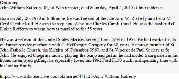 Son of John W and Lelia M (Cord) Rafferty.