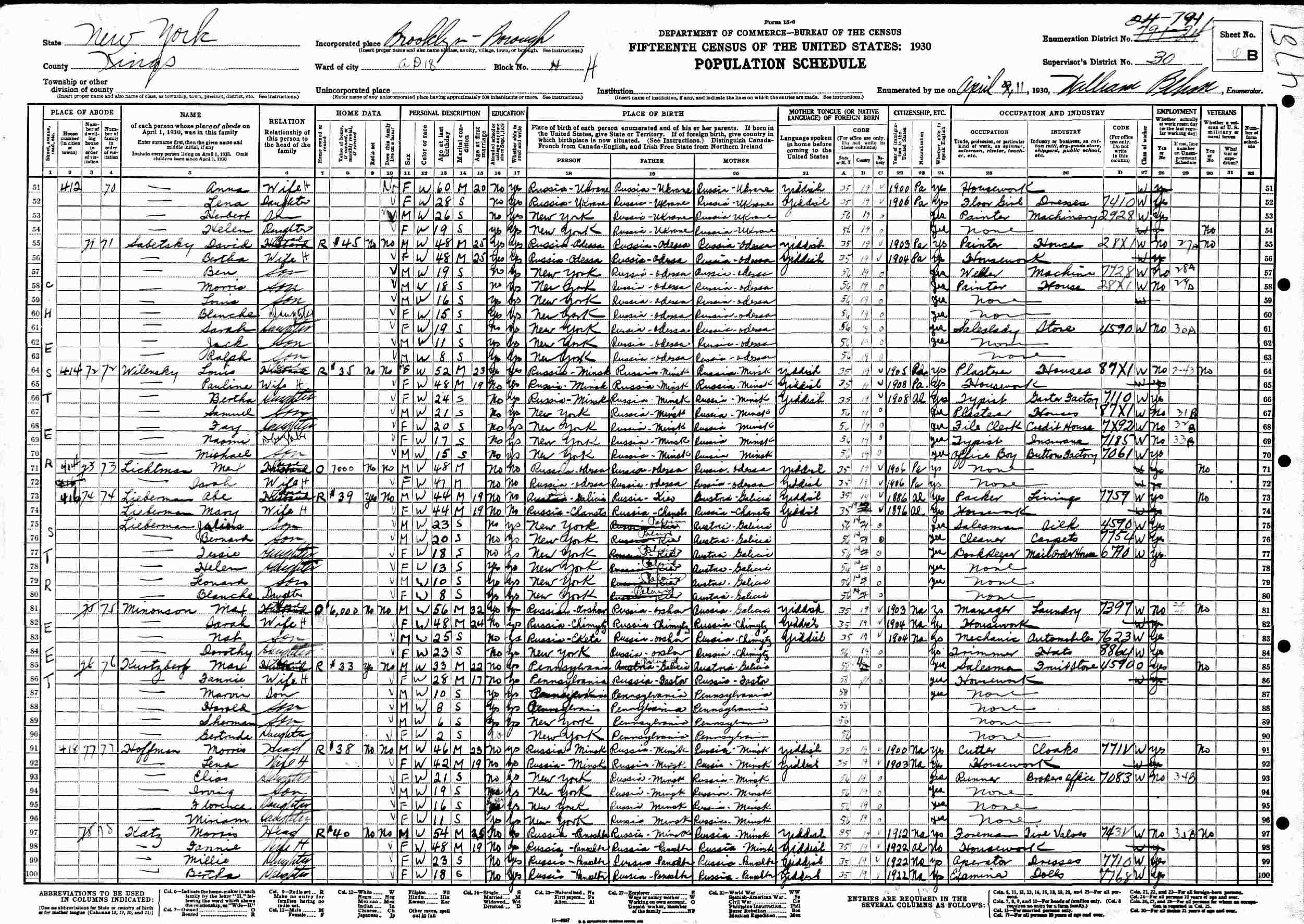 April 11, 1930 - 412 Chester Street, Assembly District 18, Block H, Assembly District 30, Enumeration District 24-794, Brooklyn, Kings County, New York.