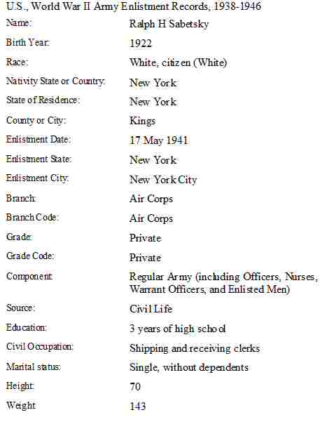 Military: May 17, 1941 - Enlistment Date - New York City, New York - Air Corps.