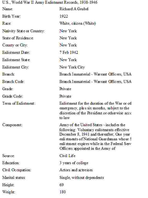 February 7, 1942 - U.S. Army Enlistment - New York City, New York.