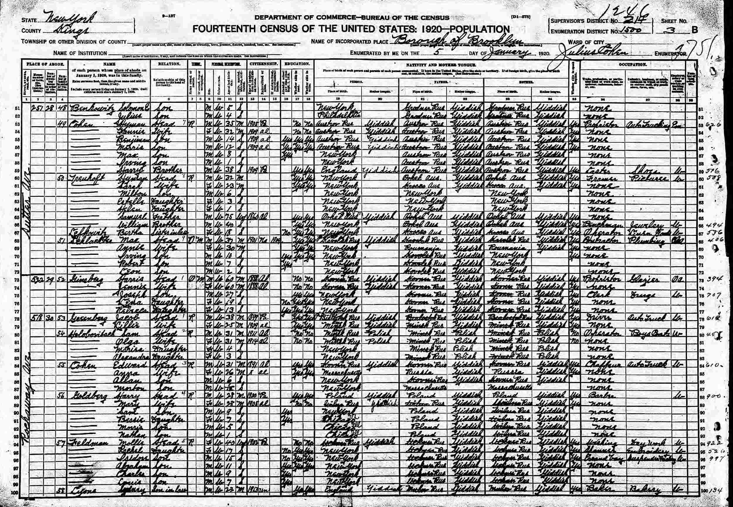 January 5, 1920 - 251 Sutter Avenue, Supervisor's District 214, Enumeration District 1500, Brooklyn, Kings County, New York.