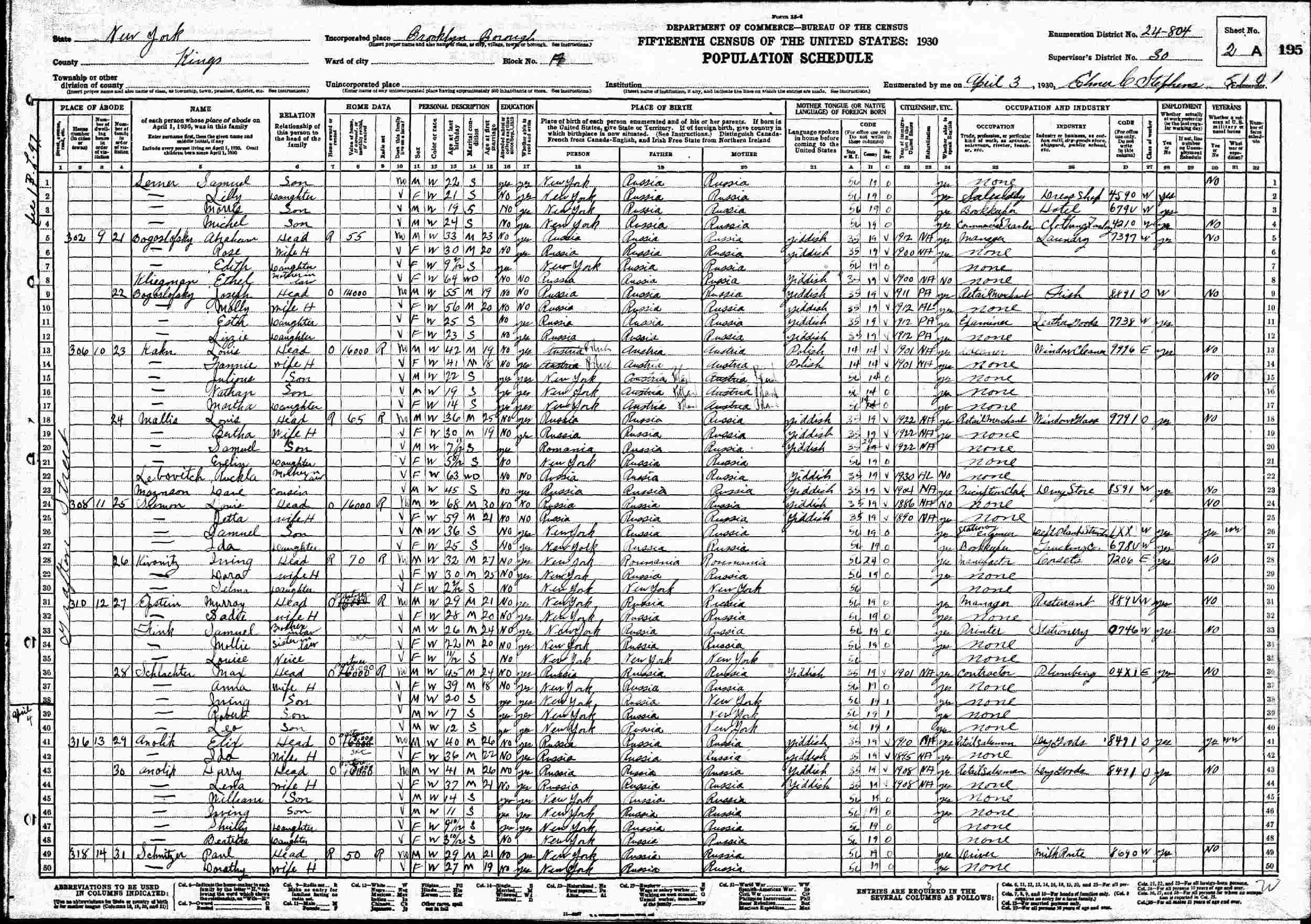 April 3, 1930 - 310 Grofton Street, Block A, Supervisor's District 30, Enumeration District 24-804, Brooklyn, Kings County, New York.