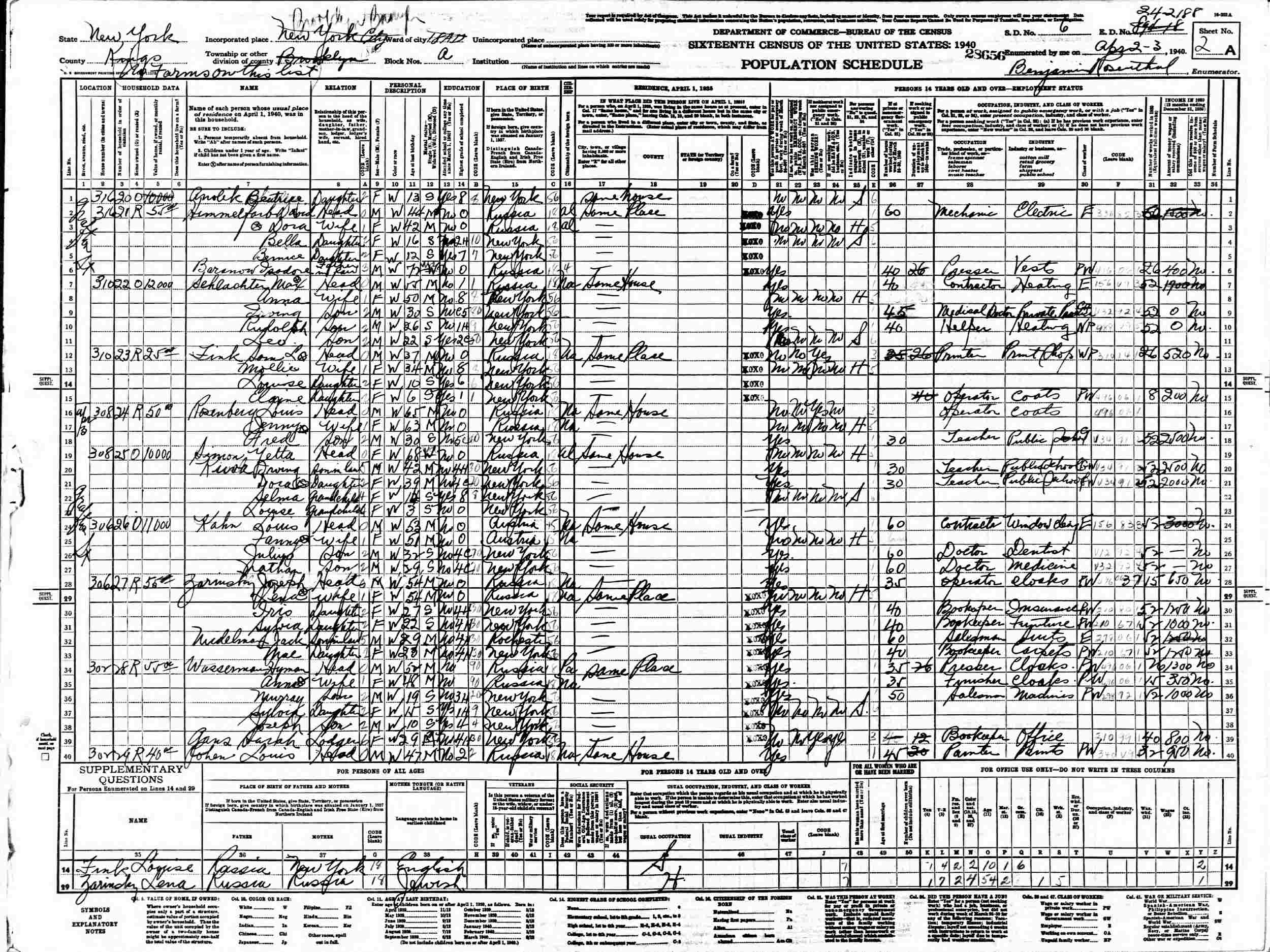 April 2-3, 1940 - 310 Grofton Street, Assembly District 18, Block A, Supervisor's District 6, Enumeration District 24-2188, Brooklyn, Kings County, New York.