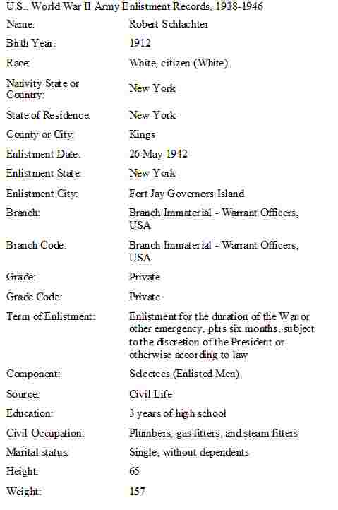 May 26, 1942 - Enlistment Date - Fort Jay Governors Island, New York.