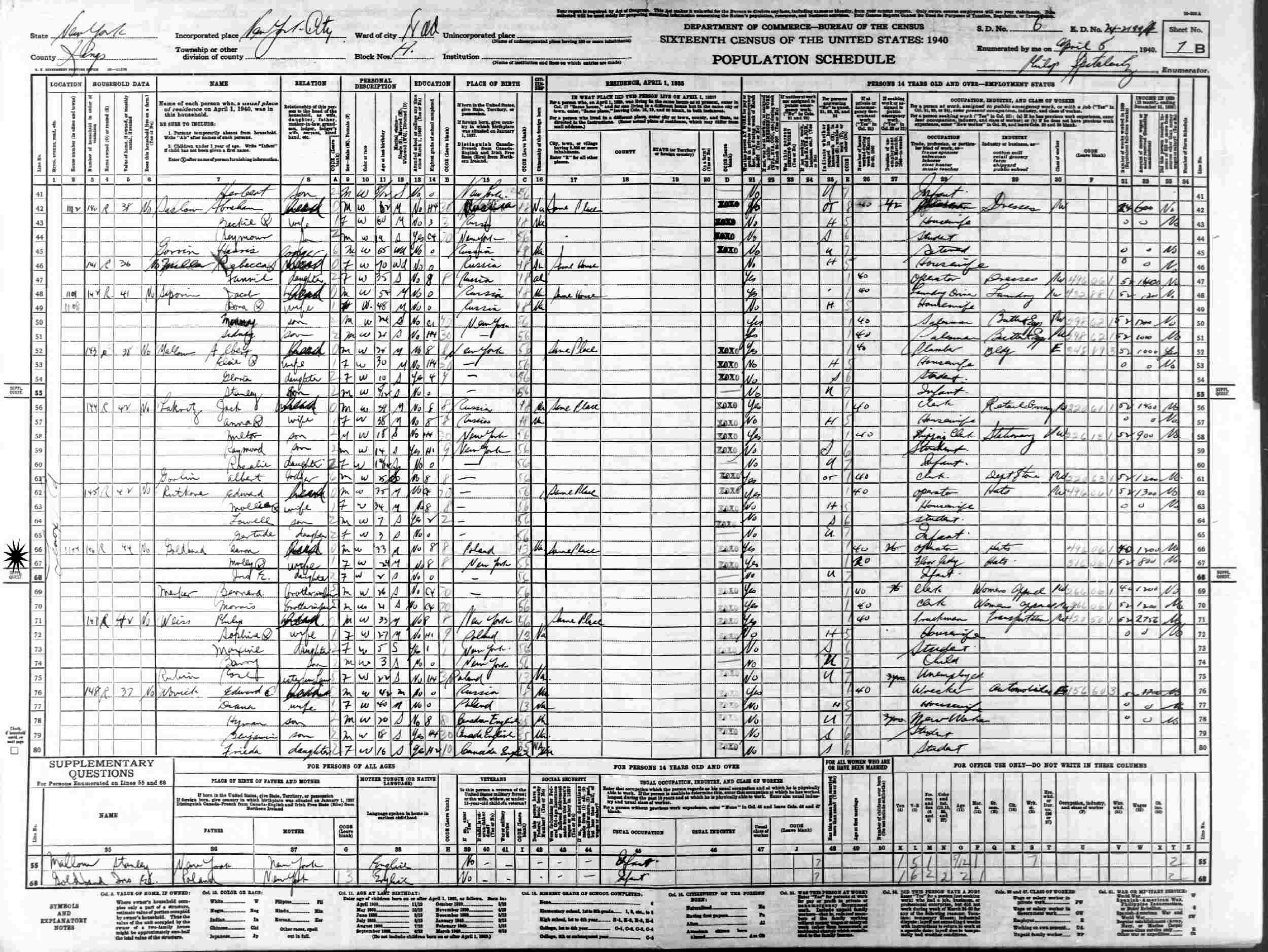 April 5, 1940 - 1104 Lenox Road, District 18, Brooklyn, Kings County, New York.