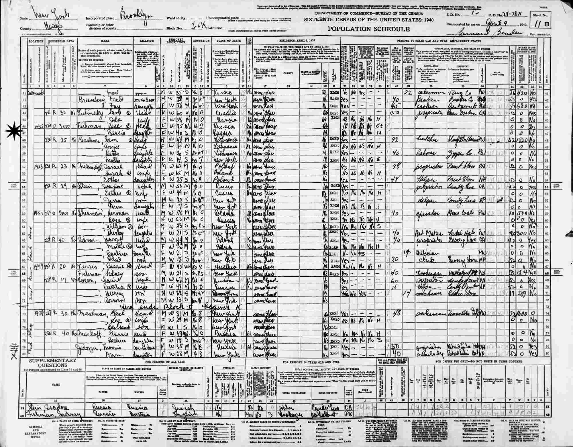 1940 - 1455 East New York Avenue, Blocks I & K, Assembly District 23, Supervisor's District 10, Enumeration District 24-7811, Brooklyn, Kings County, New York (w/mother Rose).