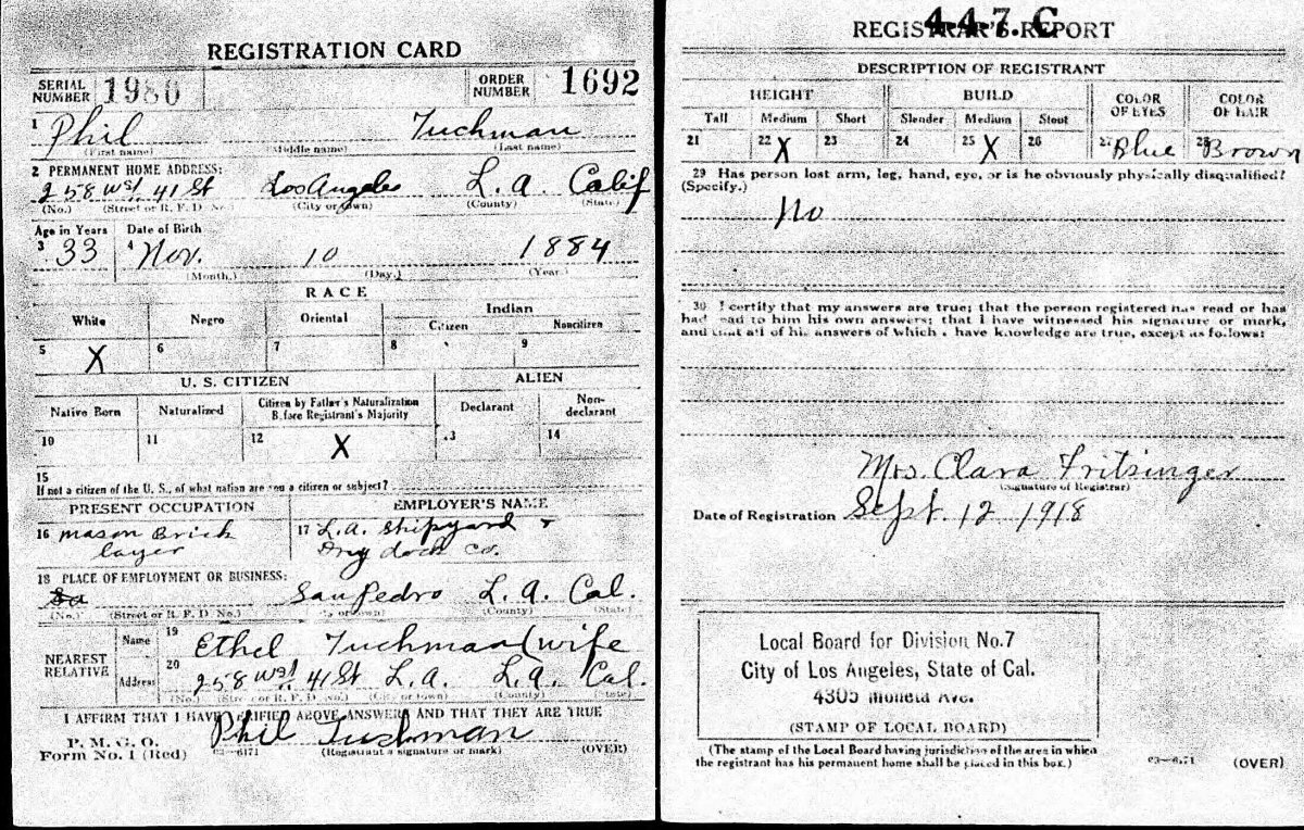September 12, 1918 - 258 W 41st Street, Los Angeles, Los Angeles County, California.